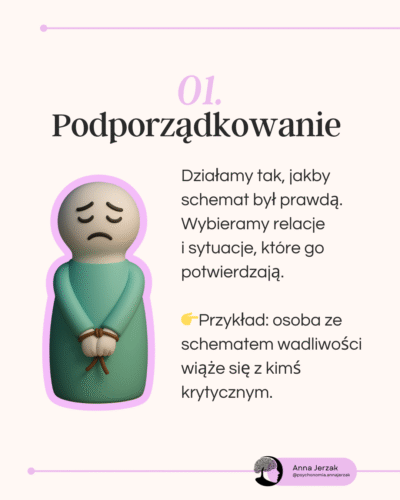 1️⃣ Podporządkowanie – działamy tak, jakby schemat był prawdą. Wybieramy relacje i sytuacje, które go potwierdzają.