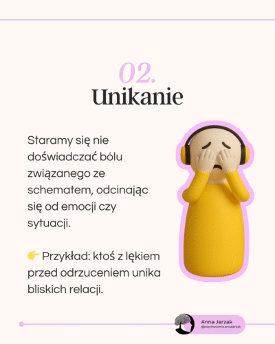 2️⃣ Unikanie – staramy się nie doświadczać bólu związanego ze schematem, odcinając się od emocji czy sytuacji.