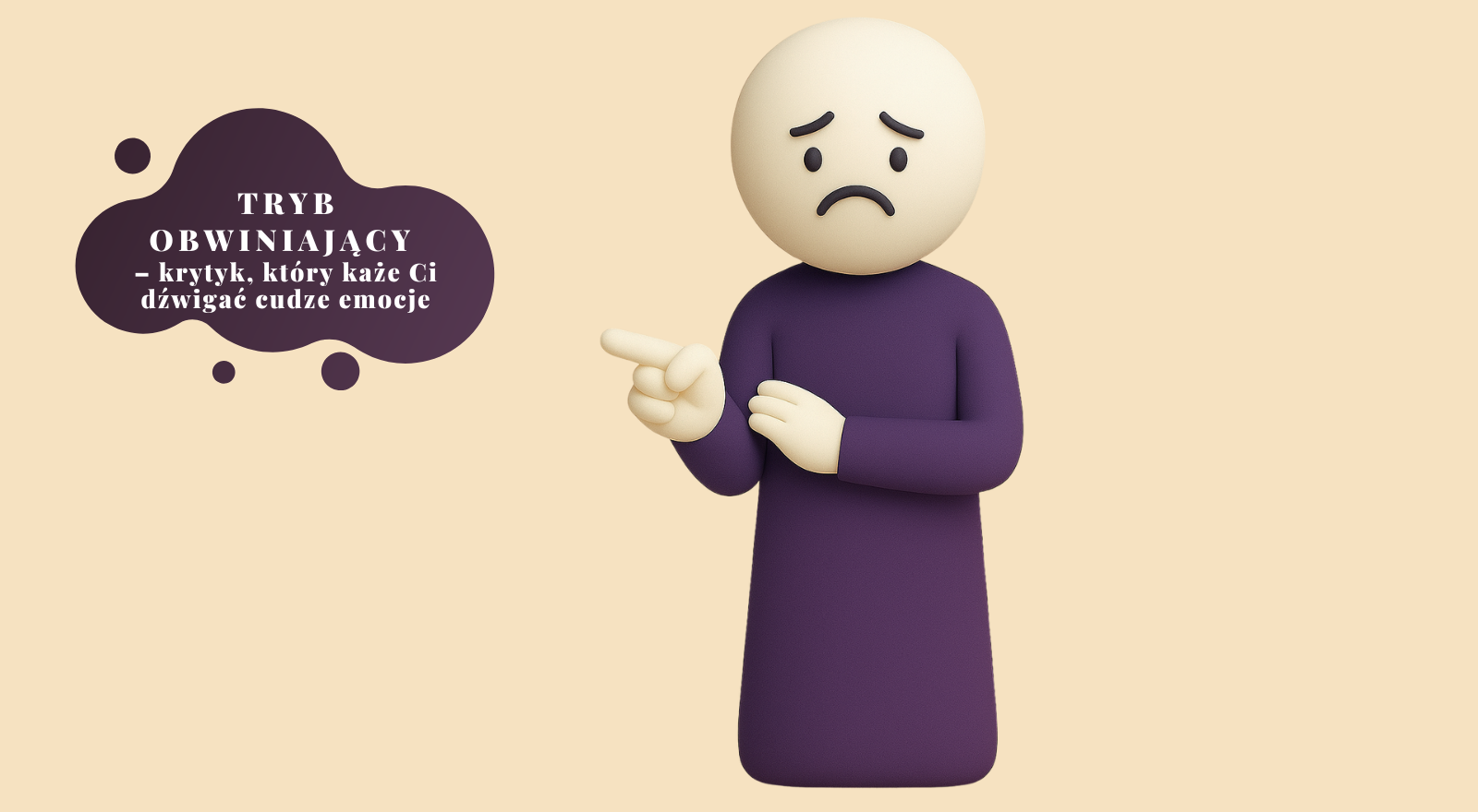 Tryb Obwiniający często rodzi się z doświadczeń, gdzie wyrażanie swoich uczuć i potrzeb było odbierane jako obciążenie dla bliskich, którzy odpowiadali smutkiem, zmęczeniem, rozgoryczeniem, poczuciem zagrożenia, czy rozczarowaniem. Jako dziecko zacząłeś więc brać na siebie odpowiedzialność za emocje dorosłych.